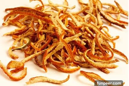 把曬乾的橘子皮壓成粉狀,刷牙時把粉抹在牙膏上刷,可讓牙齒變白。