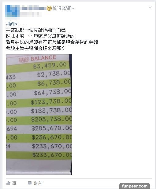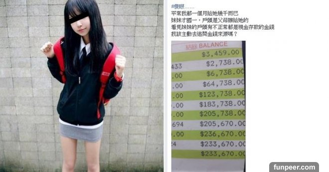 原PO說,妹妹才國一,戶頭是父母辦給她的,平常我都一個月給她幾千而已,