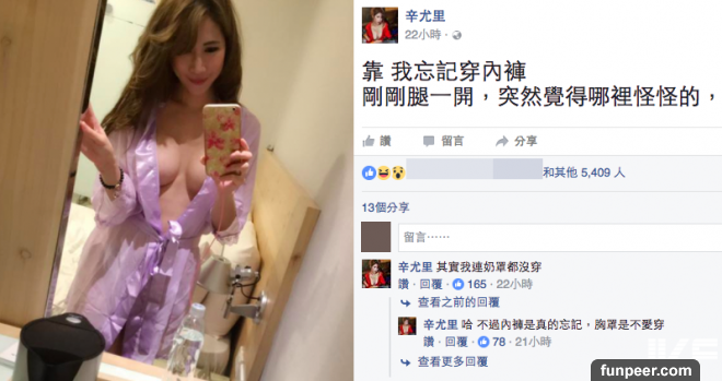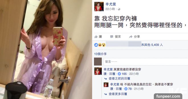 甚至還說自己是不愛戴胸罩,但真的忘記穿內褲,讓粉絲們都笑翻!