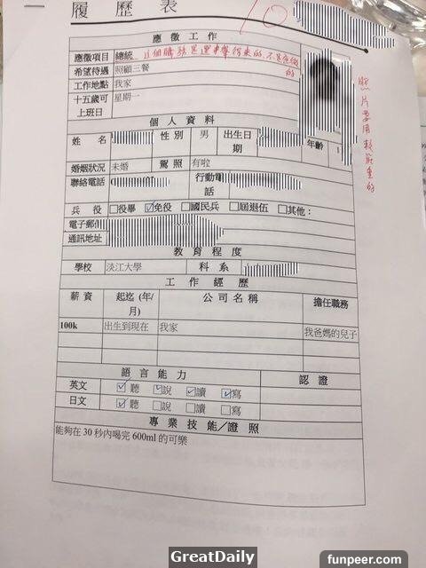史上最狂履歷表自傳,這文筆簡直神作啊!網友:「恭喜榮登2016年!第87屆唬爛王冠軍!」「我有六個姊姊,一個哥哥,全部都是我媽自然產生!」