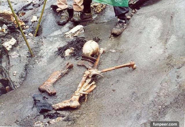 後來,結冰的湖水把他們的屍體保存了數百年,這些屍體有的還有頭髮,有的連衣服都保存完好。