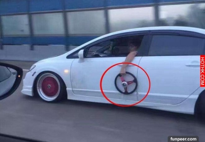 路上開車,最怕遇到那種小屁孩了。近日,在網路上瘋傳一組屁孩「拔掉方向盤」,在路上耍帥開車的照片。 只見,開著一輛白色Honda的屁孩,行駛在高速公路上,還拔掉方向盤,看起來十分威風。