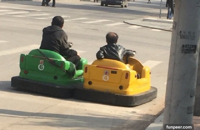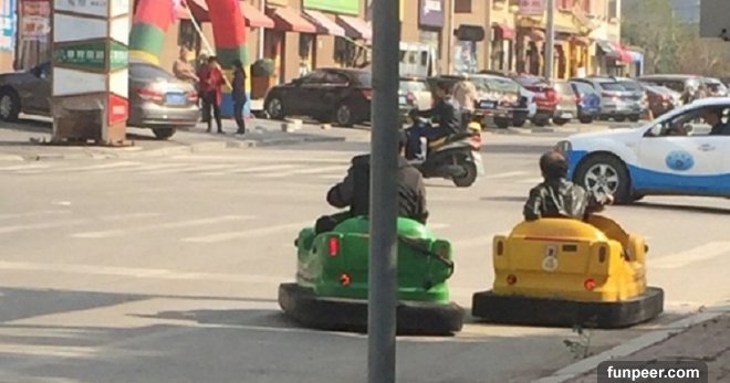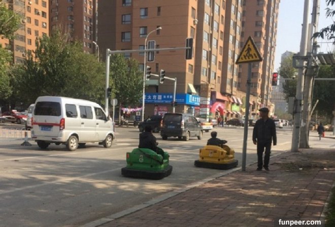 在中國,許多大城市的馬路都是車水馬龍,十分繁忙,但近日在中國瀋陽街上,竟然有兩名成年男性大白天的開著碰碰車上路?!