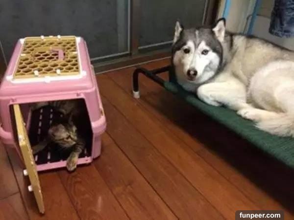 關於二哈的光榮事跡想必叔叔不用說,大家都能翻出一大篇。最近不是還有隻二哈深夜怒踹女生家門,結果是認錯門了嘛…不過今天的這隻二哈超級可愛,它居然自己撿回來一個小貓妹妹…二哈Olfa是主人Claire7年前領養回來的,剛一開始很瘦弱,隻有11斤幾乎是皮包骨,被主人養到如今肥嫩嫩的19斤,還寵出一身嬌貴的公主脾氣…