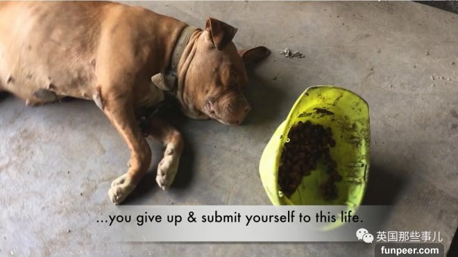 脖子上拴着鐵鏈,面前放着髒兮兮的食盒...