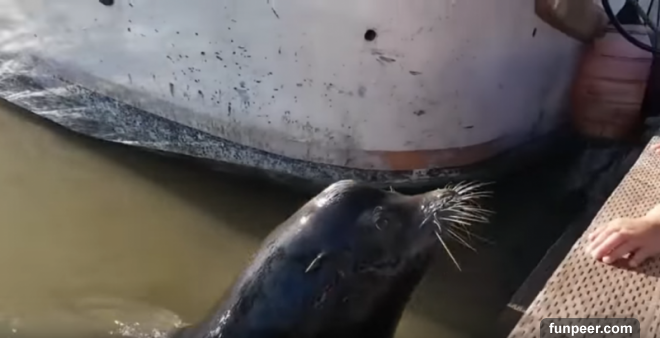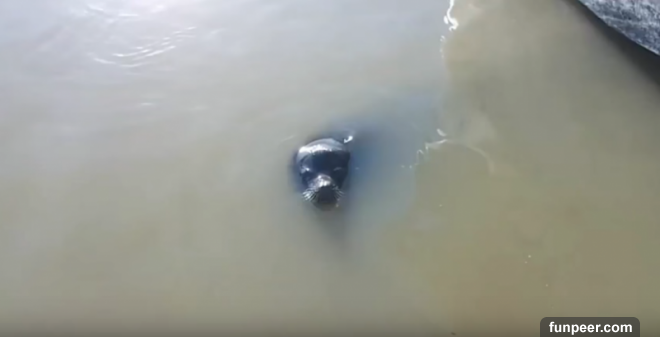 ▼原來是一隻野生的海獅,一開始牠湊上來大家還以為是在跟人們玩。