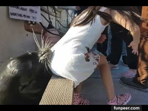 ▲小女孩被野生的海洋生物拖入水中。(source : youtube,下同)