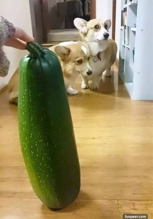 巨型西葫蘆給兩隻柯基造成了心理陰影