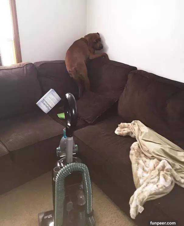 被吸塵器嚇成這副狗樣