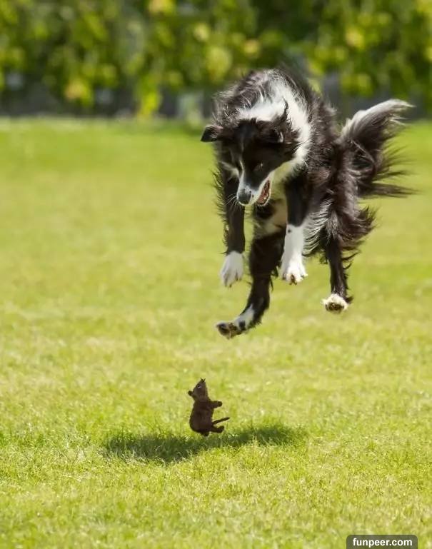 70斤重的大狗被一隻小貓驚到失控