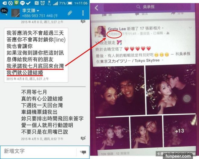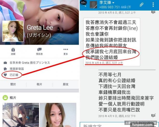 ▼F奶李米奇立刻更改臉書狀態,答應回台灣跟原PO公證結婚