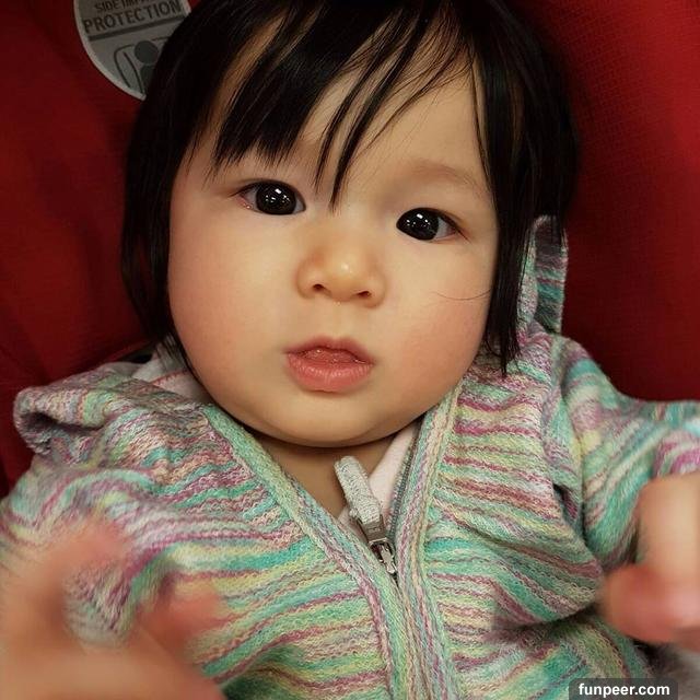 相隔幾分鐘後,鍾嘉欣再發了一條微博。可以看到Kelly坐著張開雙手,似乎想要媽媽的擁抱,扎著辮子笑的很開心。