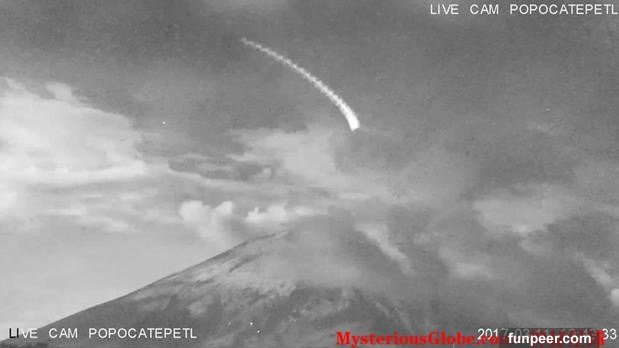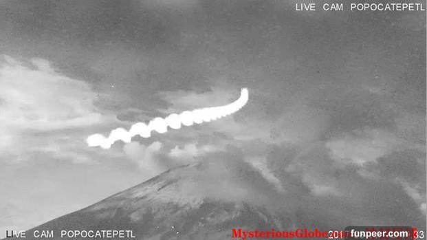 2017年3月11日,一架設置在墨西哥波波卡特佩特火山外6公裏處用于監控火山動態的攝像機,無意中捕捉到了一組驚人的畫面。