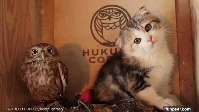 在日本大阪有一家咖啡店HUKULOU COFFEE,咖啡店裡有兩位人氣「小紅人」——小貓頭鷹Fuku和小貓崽Marimo。