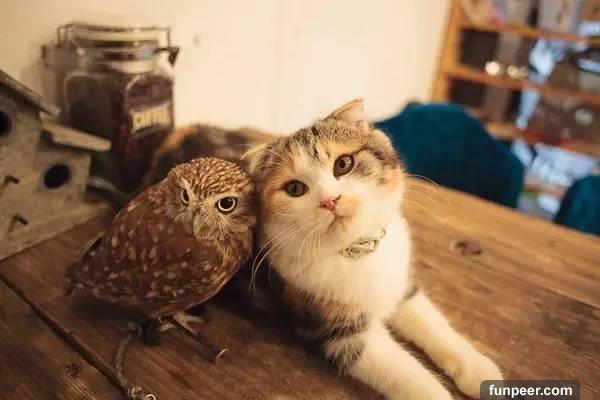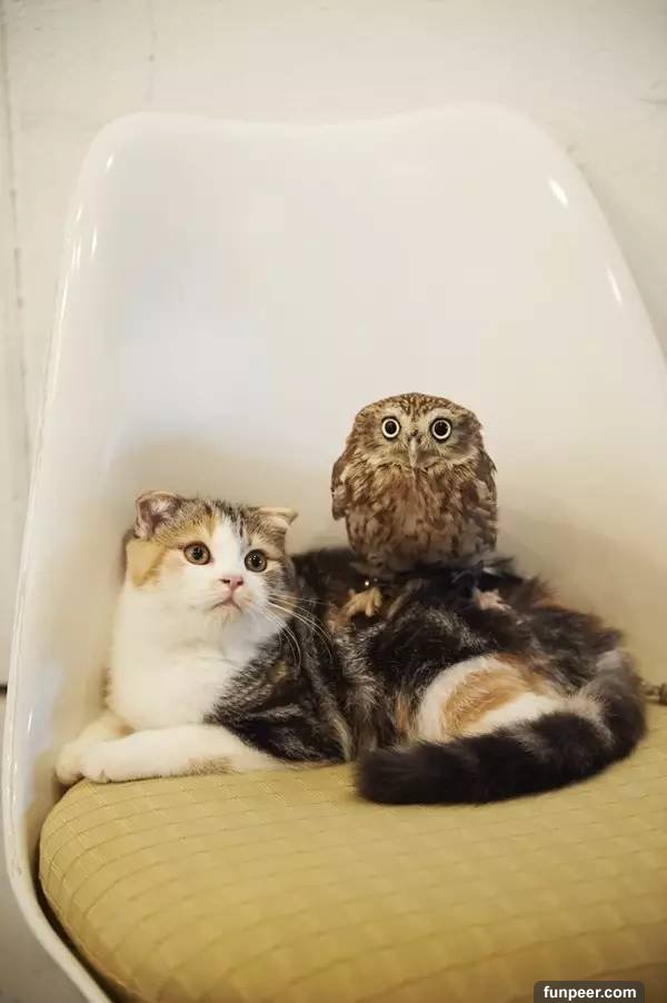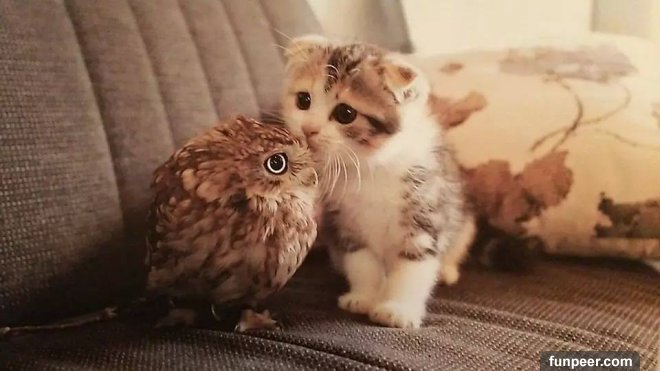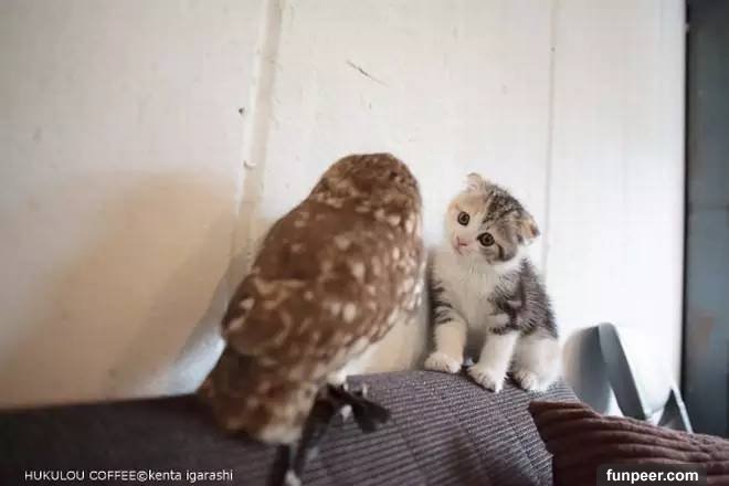 動物之間的交流和感情總是讓人很感動,比如說之前jin醬給大家介紹過的喵星人kuu和柴犬shino的故事 日本網友家的高冷喵用」生命「照顧着老年痴呆的柴犬…這畫風暖成愛情! 。而今天要給大家介紹的是一隻貓頭鷹和小貓咪之間溫暖的友情故事。