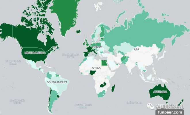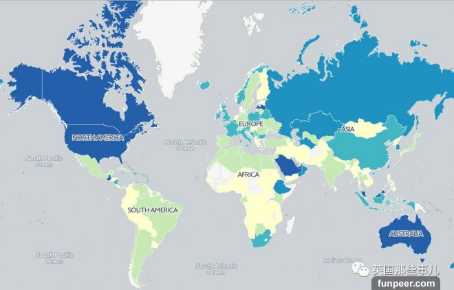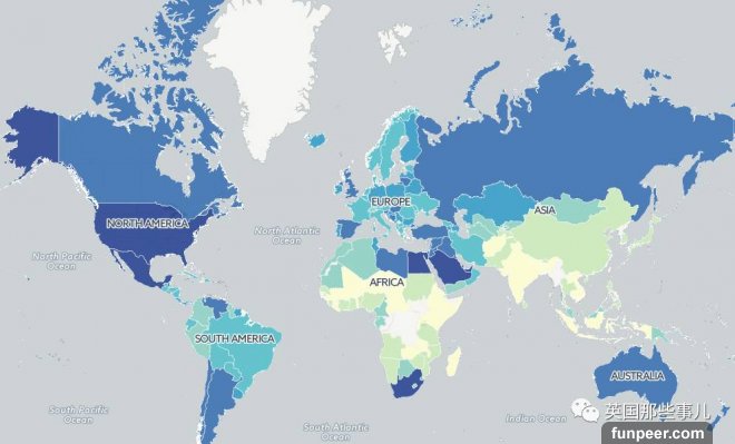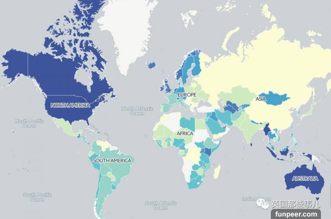 這個方式很不錯耶!!!原文:最近,英國的每日電訊報收集和整理了不少奇怪的世界地圖,用不同深淺的顏色來代表各國不同的狀況,有‘世界小姐地圖’,有‘全球飲酒地圖’….看完,感覺各種長知識…..一起來看看~1,誰對槍最情有獨鍾?(顏色越深,槍支越多)