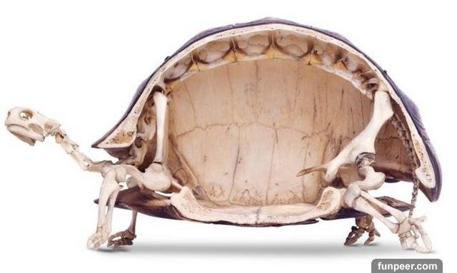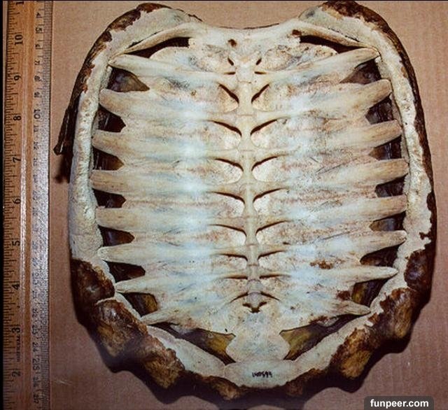 龜殼內部并不是光滑的,龜殼上是它的脊椎和肋骨。