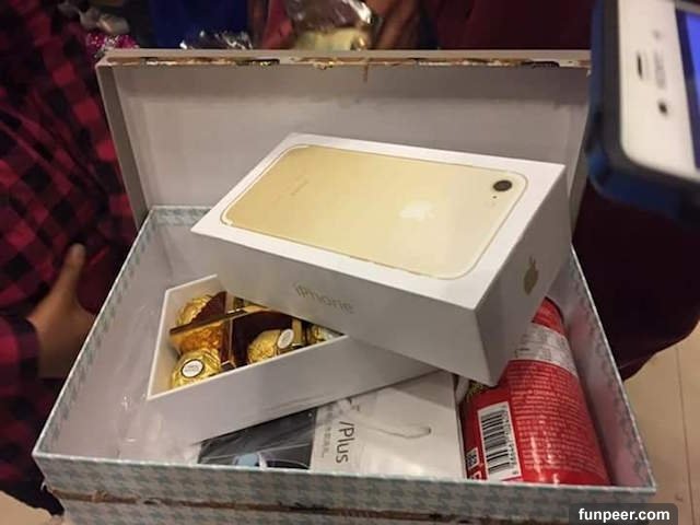 ▲網友說:我參加的社團,舉辦聖誕節晚會交換禮物的活動,而我們其中一個中了大獎iphone7,當下看到包裝真的差點叫出來,沒想到打開來居然是....金莎(傻眼