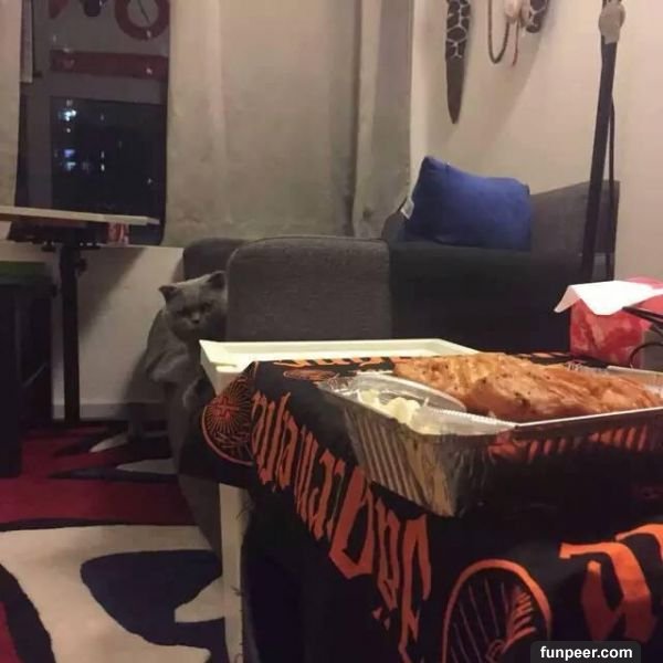 緊盯桌上雞排半小時 喵星人眼神有殺氣