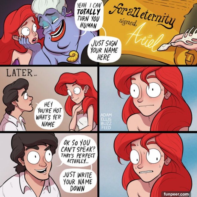 〔小美人魚〕這個迪士尼動畫是很多有少女心的人會愛的經典卡通,但那些美好總是出現在不可能的電影之中,回到現實面去考量,我們不免會想到很多疑問...以下這些疑問是來毀童年的,想一次即可!1.他們都吃什麼?如果是魚的話那就是吃海藻啦!所以艾莉兒會吃青苔?
