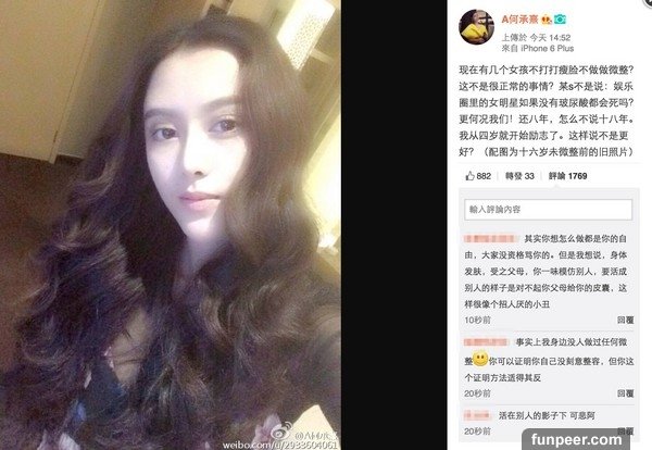 但其實何承熹事後有在微博上面澄清,表示自己只是微整並沒有大整,還Po出自己16歲時還沒有微整的清純照片,「現在有幾個女孩不打打瘦臉不做做微整?這不是很正常的事情?某S不是說:娛樂圈裡的女明星如果沒有玻尿酸都會死嗎?更何況我們!」