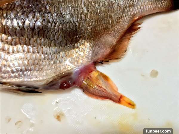 讓我們把鏡頭拉近一點,網友把魚肚剖開後,竟然滑出這個東西!這好像是...小魚的尾巴?