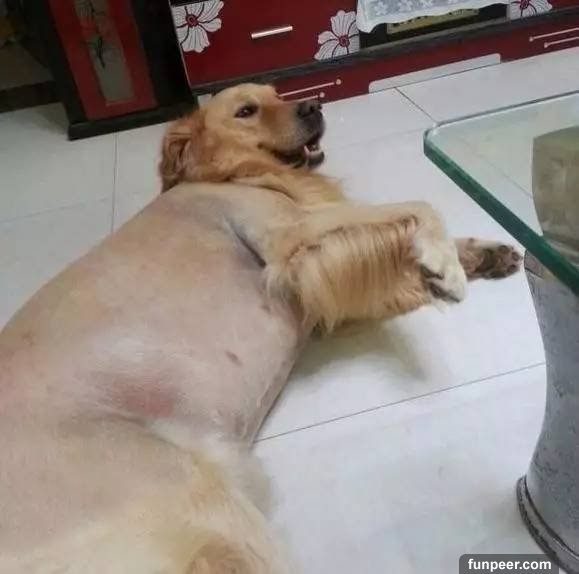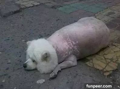 奶奶還幫它把毛剃了,這大肚子,吃了多少豬蹄啊!