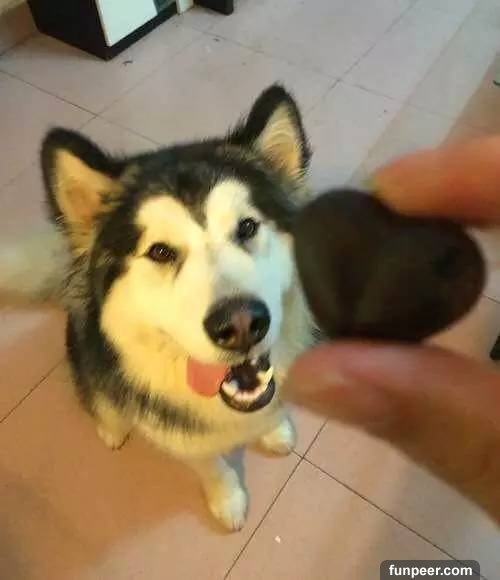 所以你知道一塊巧克力對狗狗的危害了吧?但是面對狗狗這樣的眼神和一幅「我想吃」的樣子也不是完全沒有辦法。 鏟屎哥今天推薦一款專門為狗狗推出的巧克力, 不含可可鹼和咖啡因 ,專為狗狗設計的美味甜食—— Armitage 美吉特 狗狗巧克力豆 !