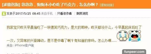 帖子的內容大概就是醬,上圖的這隻蠢萌比熊多多偷偷的吃了家裡面的巧克力!根據帖子的描述多多已經出現了異常興奮躁動的狀況。 於是鏟屎哥趕緊在帖子回復了這位主銀要趕快帶狗狗去醫院!