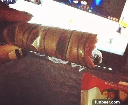 這一條就是多多主銀放在家的一塊巧克力,多多寄幾在家咬開了包裝啃了一口巧克力棒!