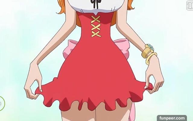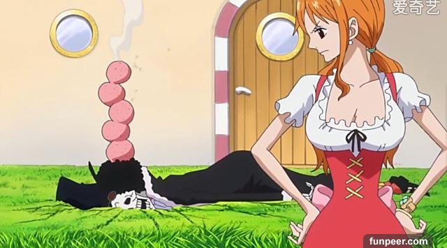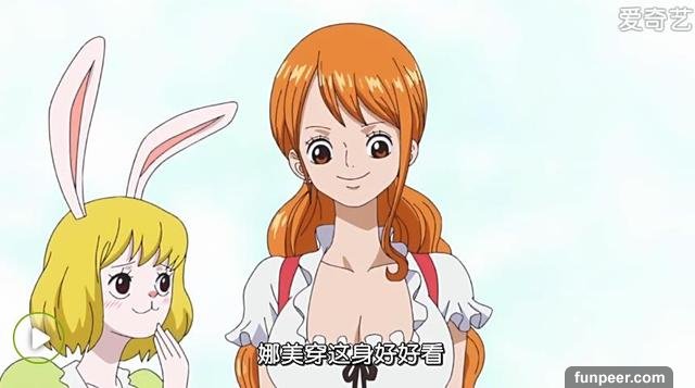 要进入巧克力岛,娜美就先乔装一下,以一个新形象出场了。美腿加上完美身材的特写,就连娜美自己也称赞衣服可爱