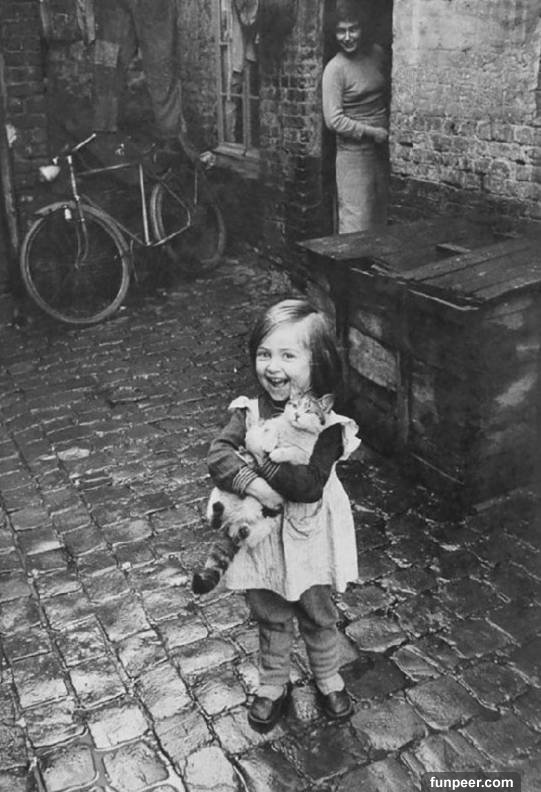1959年,住在貧民區的法國小女孩和她的貓。