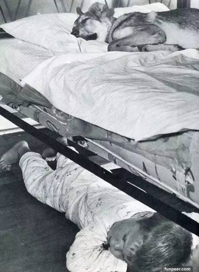 1953年,小男孩把床讓給了他的好朋友,一隻狗狗。