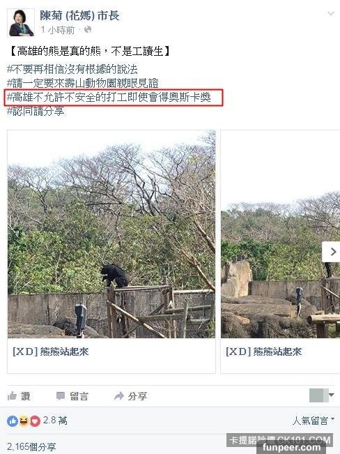 「不要再相信沒有根據的說法」、「請一定要來壽山動物園親眼見證」、「高雄不允許不安全的打工即使會得奧斯卡獎」、「認同請分享」。再度讓網友都瘋啦XD