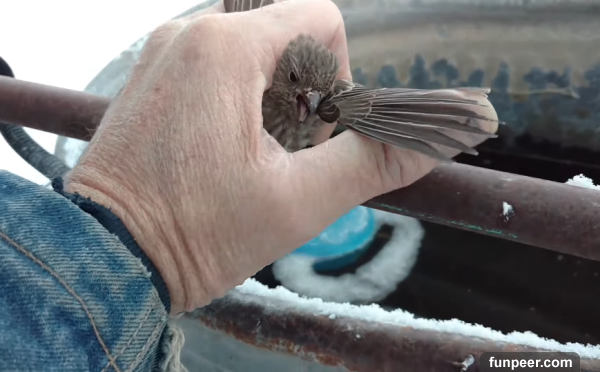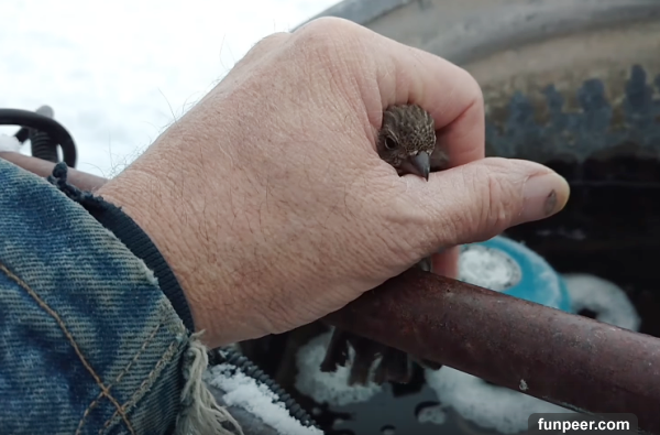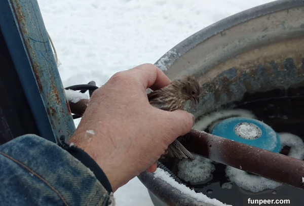 小鳥兒被凍僵無法動彈,一位大叔抓住牠然後呼氣….讓大家都驚呼「太暖心」!