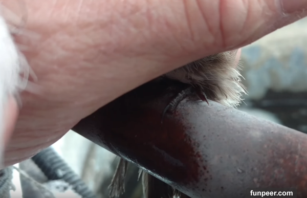 Source: Youtube看得出來這裡大雪紛飛非常之冷小鳥的爪子可以說是被「黏」在金屬桿上 大叔見狀先是一把抓住小鳥