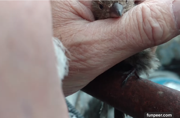 Source: Youtube經由他輕輕安撫後也帶給小鳥一些溫度 之後大叔對著爪子呼出熱氣