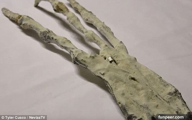 據觀測,這隻手骨上不僅只有3根指頭,且每根指頭都擁有6節關節,從外觀看上去擁有皮膚與指甲構造,