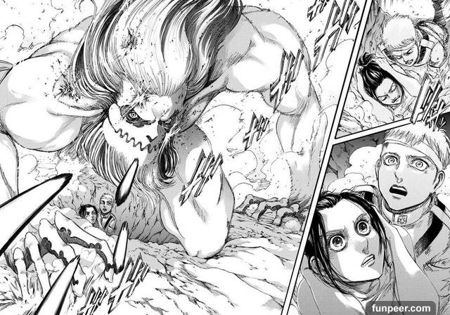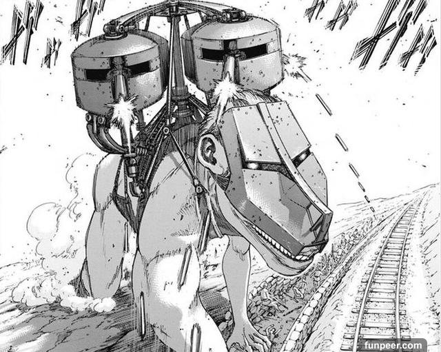 車夫巨人?曾經的四足茶幾巨人!漫畫81話,四足茶幾巨人救下獸之巨人後,以說話方式命令其余巨人去攔截利威爾。說話的權限已經讓四足茶幾巨人凌駕於「奇行種」之上,雖有伊爾澤的OAD外傳,其中遇到的奇行種同樣能斷斷續續說話,但91話漫畫里,四足茶幾巨人可是背上扶著兩個機槍碉堡!如果說,巨人有著殺戮人類的本性,那麼四足茶幾巨人便是克服自己吃人的本性,這已然是智慧巨人的范疇。