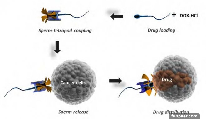 先將精子泡入藥物,再安裝可以指引的儀器在精子上,當找到癌細胞時,精子會撞擊來突破細胞壁,然後讓藥物入侵。