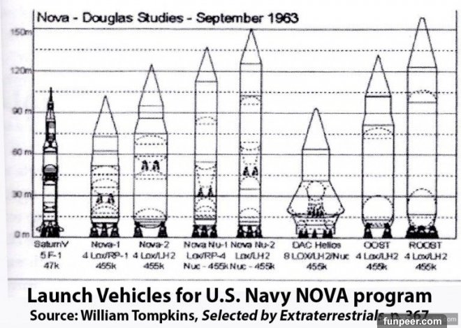 為了要佐證自己的驚世證詞,湯普金斯在他的自傳中收錄一部分過去的工作文件 第一份文件是1963年道格拉斯飛行器公司的新星計劃發射載具研究圖。
