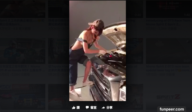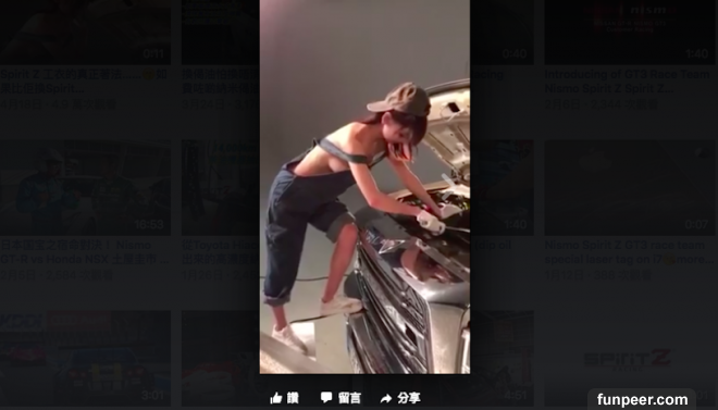 最近在臉書的粉絲專頁「SpiritZ Racing Motor Oil - International Distributor」分享了一段爆乳修車女工的畫面,引起網友熱議!從影片中可以清楚看到妹子身穿瑪莉歐的工作服、大尺度真空演出,讓鏡頭前的觀眾看der直呼過癮!