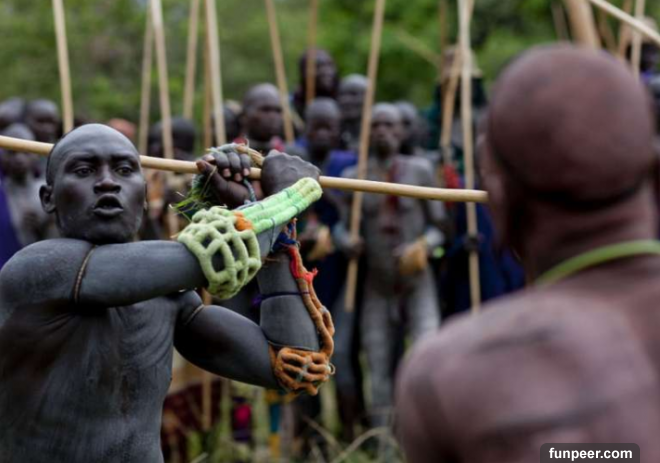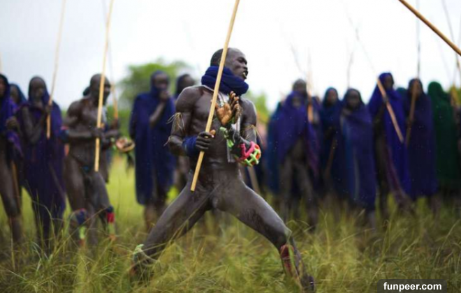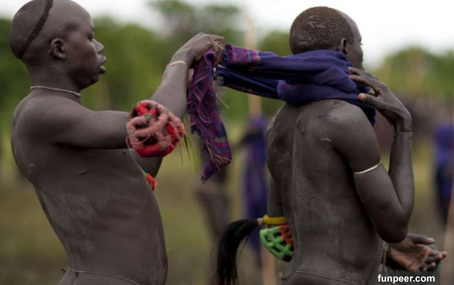 他們每年秋收之後都會舉辦鬥棍比賽(Donga),參賽的勇士需要拿著削尖的木棍上場,但據說一個不小心參賽的鬥士可能就會在比賽的過程中戰死!