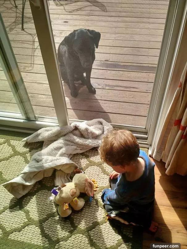 “我兒子把真的汪關在外面,然後開始認真的餵自己的玩具汪...”