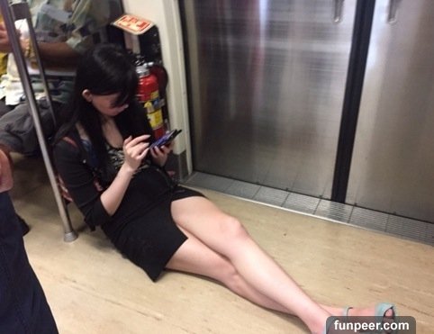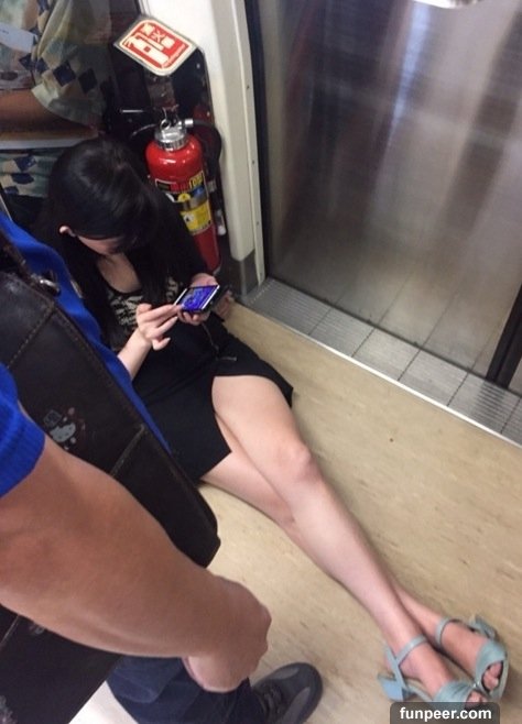 一早搭捷運就有人大辣辣坐在捷運地板車門前,準備大罵一翻,當視線往下看到她的....都升旗原諒她了!