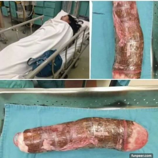 事後,在醫生協助下,終於成功搶救木薯 (?) 但網友驚訝的是,女子竟還在木薯上套了套套!