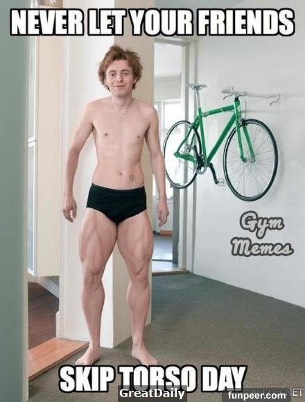 美國動漫裏麵不是有一些超級英雄就是上身塊頭大下身腿細小嗎?下麵這些健身達人鍛煉隻鍛煉上半身,下半身就...... 話說,現在人們不是很熱衷去健身房練肌肉的嗎?如果隻練上半身,下半身不去鍛煉的話就會非常違和!上半身的大塊頭,下半身一看......有點像雞爪......比如下麵這些,你們感受下!