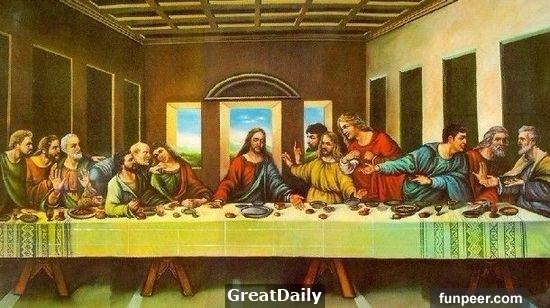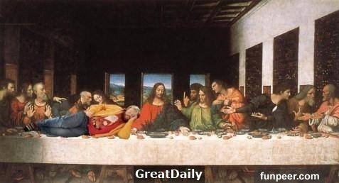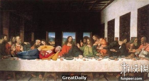 霍克被PS後的照片2、《最後的晚餐》《最後的晚餐》是義大利文藝複興時期名畫家達•芬奇的巔峰之作,取材於《新約聖經》。 據說耶穌最後一次到耶路撒冷去過逾越節,猶太教祭司長陰謀在夜間逮捕他,但苦於無人帶路。正在這時,耶穌的門徒猶大告密說:「我把他交給你們,你們願意給我多少錢?」猶太教祭司長給了猶大30塊錢。於是,猶大跟祭司長約好:他親吻的那個人就是耶穌。逾越節那天,耶穌跟12個門徒坐在一起,共進最後一次晚餐,他憂鬱地說:「你們中有一個人要出賣我了!」12個門徒聞言後,或震驚、或憤怒、或激動、或緊張。《最後的晚餐》表現的就是這一時刻情景。