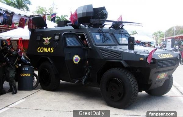 圖片為委內瑞拉國民警衛隊(CONAS)裝備的VN4型全地形裝甲戰車,請注意該車的防彈玻璃外側還安裝了兩層防彈鐵柵欄,用於防禦燃燒瓶和其他投擲物對車體和防彈玻璃的損壞,該車的輪胎為高密度防彈防炸輪胎,可以經受50千克地雷或自製爆炸物的攻擊。近年來,中國製造的武器裝備在世界市場上攻城略地,不斷開拓新的用戶。作為拉美重要的能源橋頭堡國家,委內瑞拉、玻利維亞和秘魯等國更是對中國武器情有獨鍾,裝備了大批中國生產的飛機和戰車等武器,而靠著中國買來的先進武器,委內瑞拉也在拉美成為地區軍事強國,目前,委內瑞拉的主戰兩棲戰車、兩犧坦克、空軍教練機、高級教練機和防空飛彈大多來自中國,因為中國生產的裝備太多,甚至被一些拉美媒體稱該國軍隊為「南美解放軍」,委內瑞拉因此也成為全世界購買中國武器最多的五個國家之一。