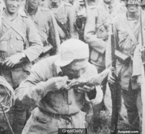 一名10天沒有吃東西的士兵被俘後,日軍給他食物,並圍觀看笑話,稱他「狀如餓鬼」。接下來他的命運不得而知,但我們知道作為一個戰俘吃飽飯即便去死也並沒什麼恥辱。 來源:m.wanhuajing.com